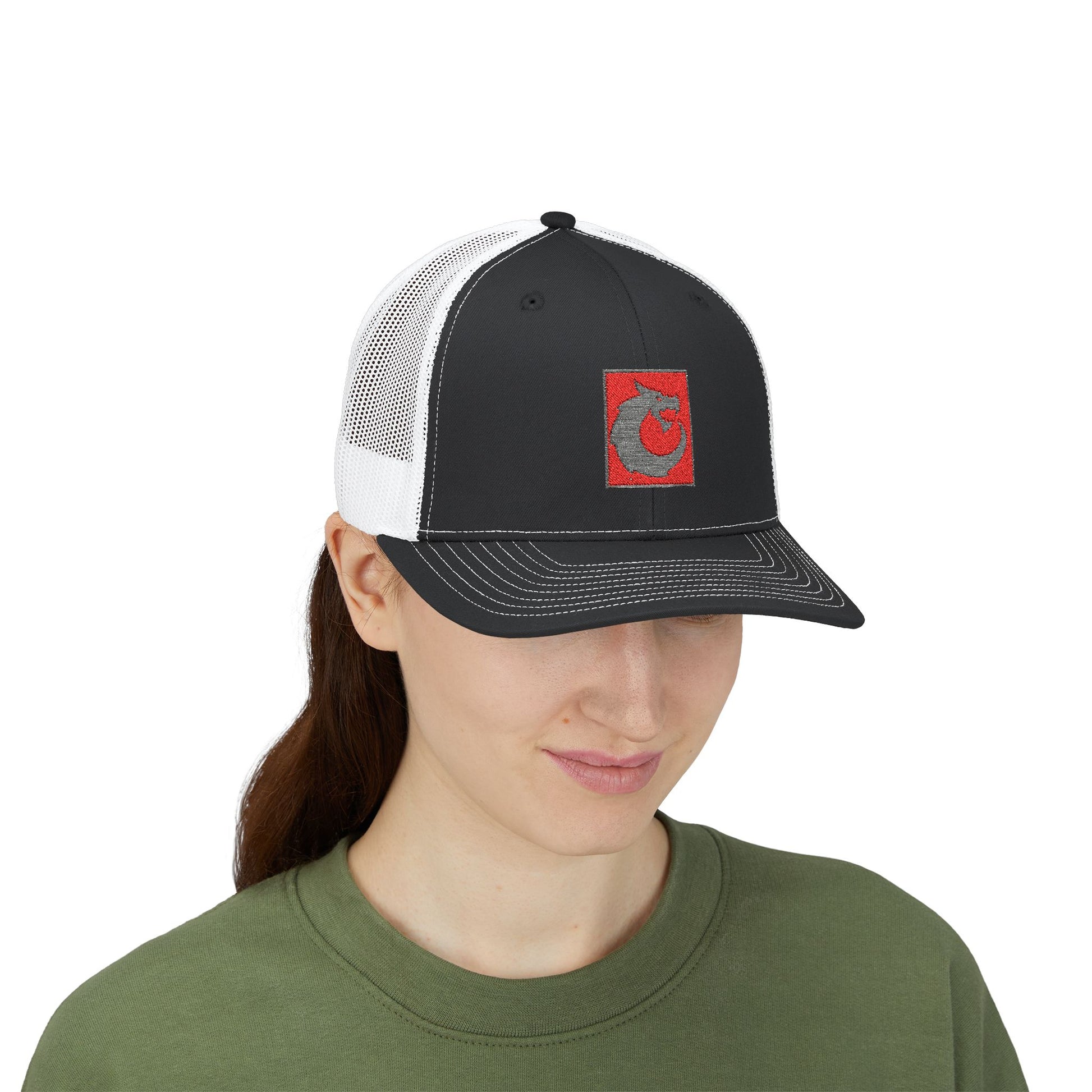 Snapback Trucker Cap - Gray Red Dragon